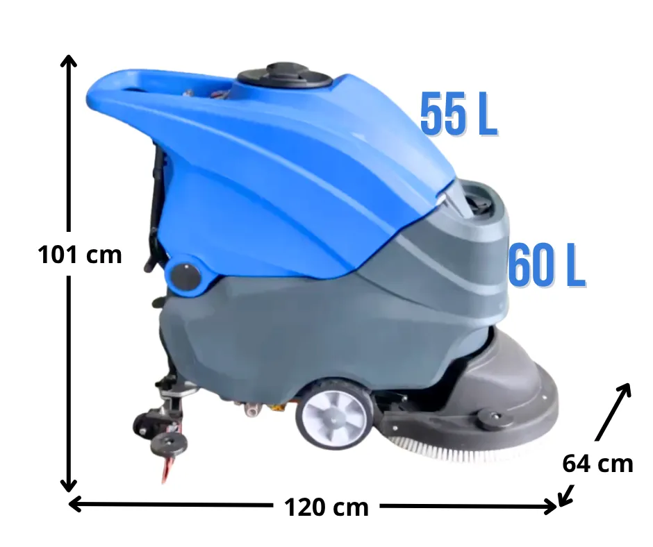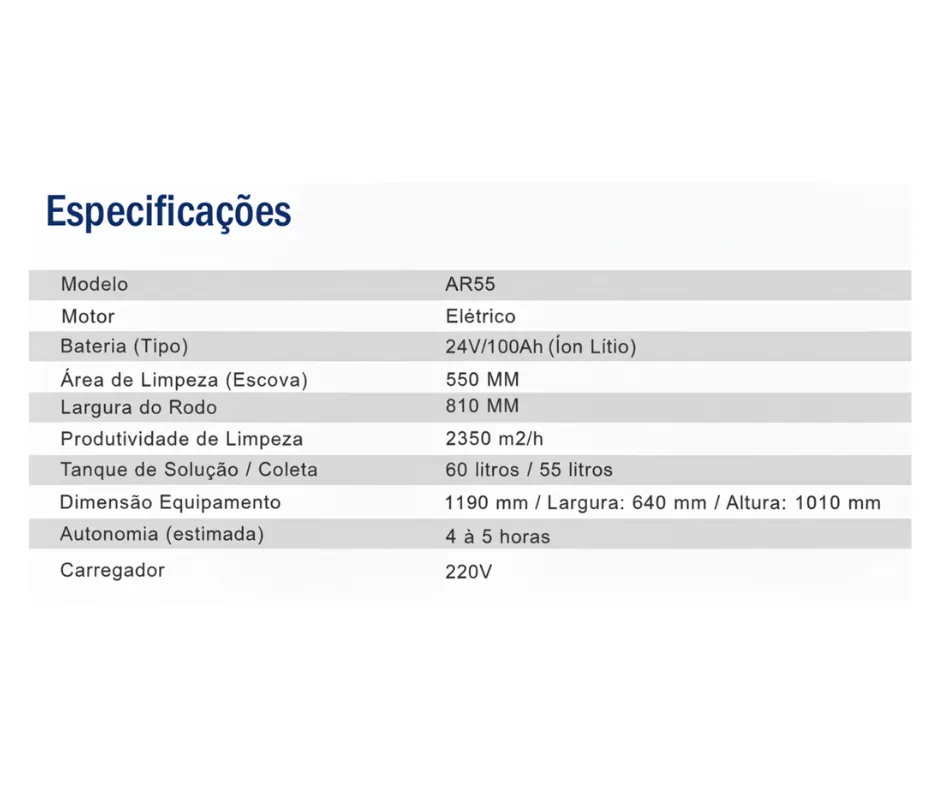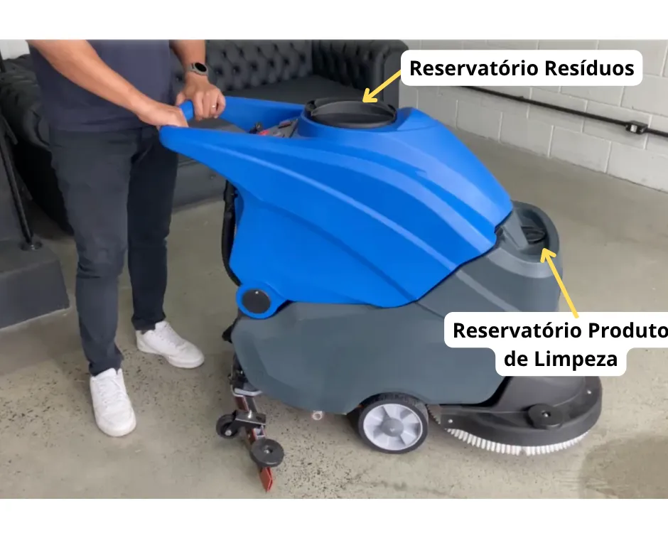 A Lavadora e Secadora de Piso AR55 é um equipamento de baixa emissão de ruído. Equipado com uma escova robusta e tanques de água (60L/55L), este equipamento maximiza a eficiência da limpeza. Sua bateria de íon-lítio de alta qualidade oferece até 5 horas de funcionamento contínuo com uma única carga. O design ergonômico inclui escovas de desmontagem rápida, acessórios à prova de colisão e um sistema de rega automática. Além disso, o visor multifuncional exibe o nível da bateria e alarmes de água, garantindo uma operação fácil e intuitiva.